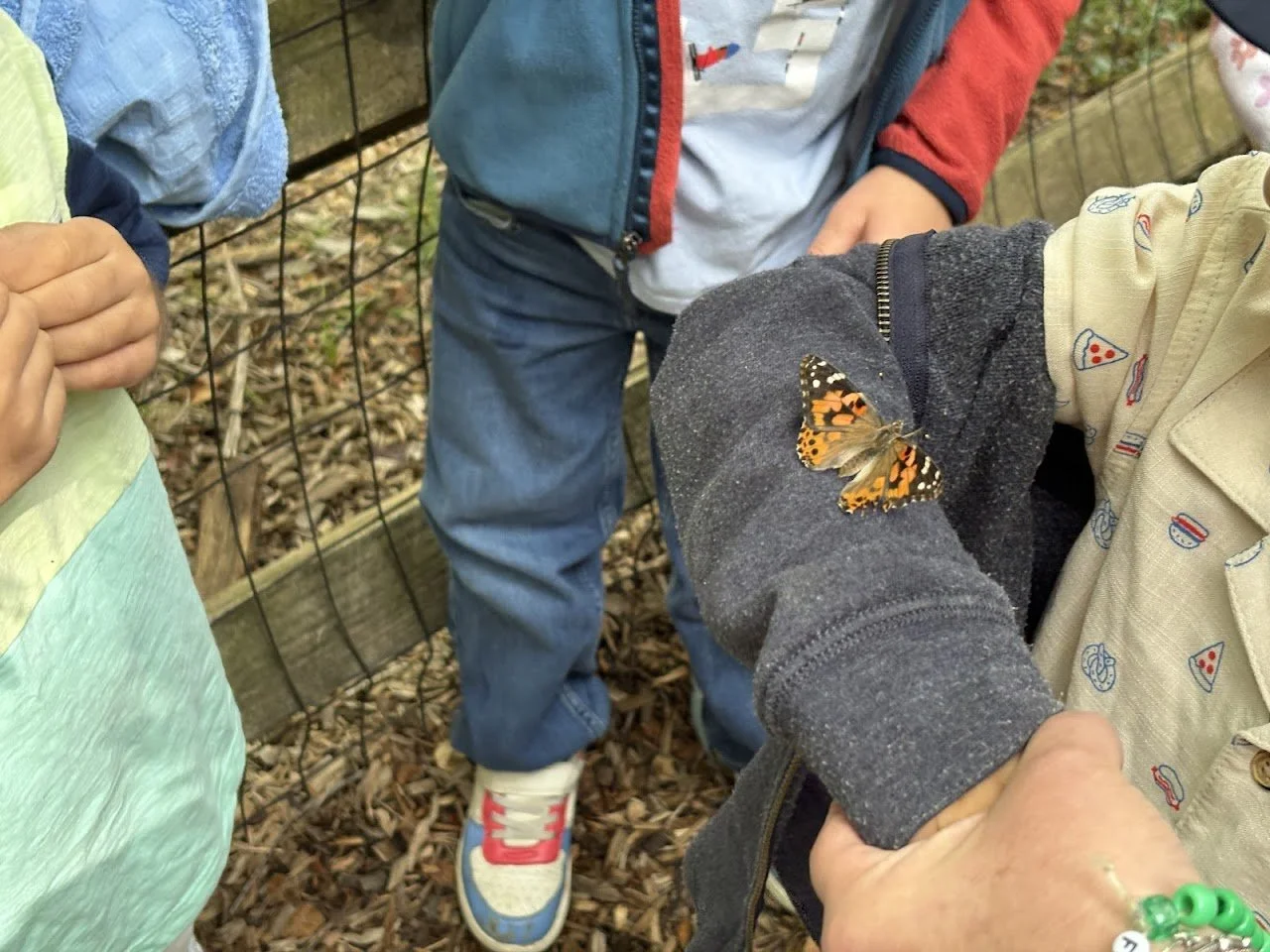 In the last weeks of school, students in all grades watch caterpillars form cocoons and emerge as butterflies. Once the butterflies are ready to take flight, they are released on the playground. All of our students delight in watching the butterflies fly off - some quickly and without trepidation, and others sticking close for awhile before starting their new adventure!